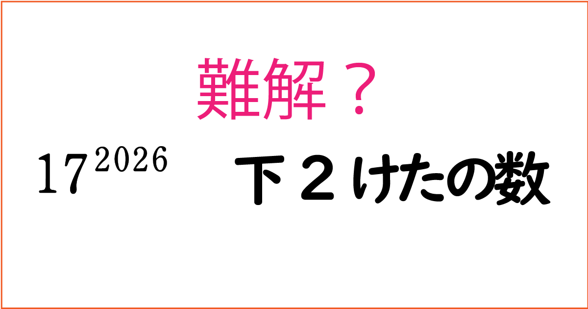 別ページ 大数の一の位 では,\(17^{2025}\) を求める方法を扱っています。